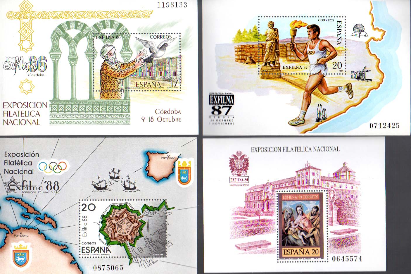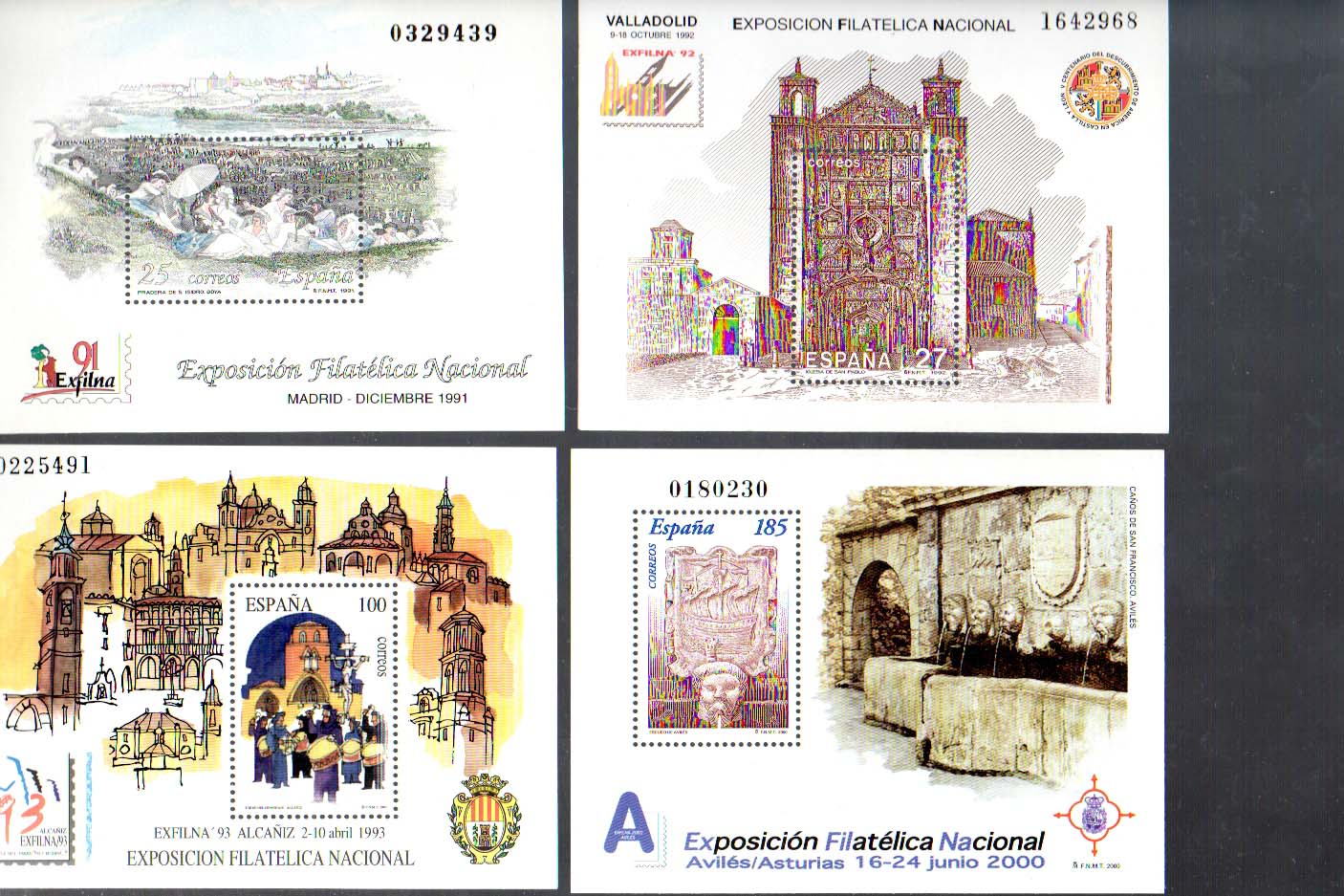 Hojitas, nuevas, correspondientes a las EXFILNAS de 1986, 1987, 1988, 1989, 1991, 1992, 1993 y 2000