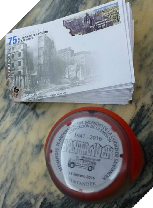 2016-02-15. Efemerides. 75 Aniversario del incendio de la ciudad de Santander. Presentacion. 2016-02-15. Matasellos. Baja.jpg