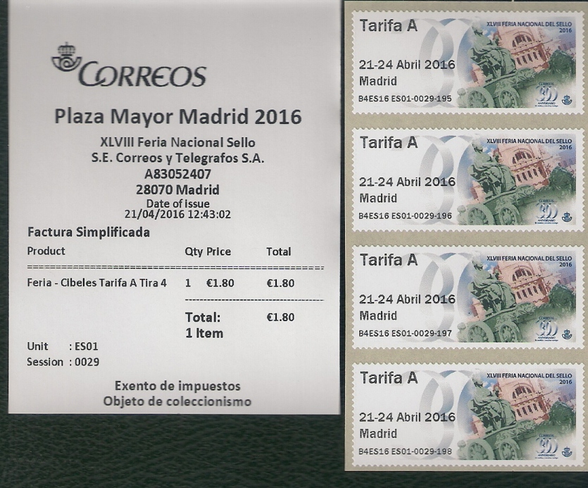 - XLVIII Feria Nacional del Sello. Madrid 2016: Modelo Caballo y Modelo Cibeles. Emisión en feria días 21 y 22 Abril ambos modelos. Autoservicio.