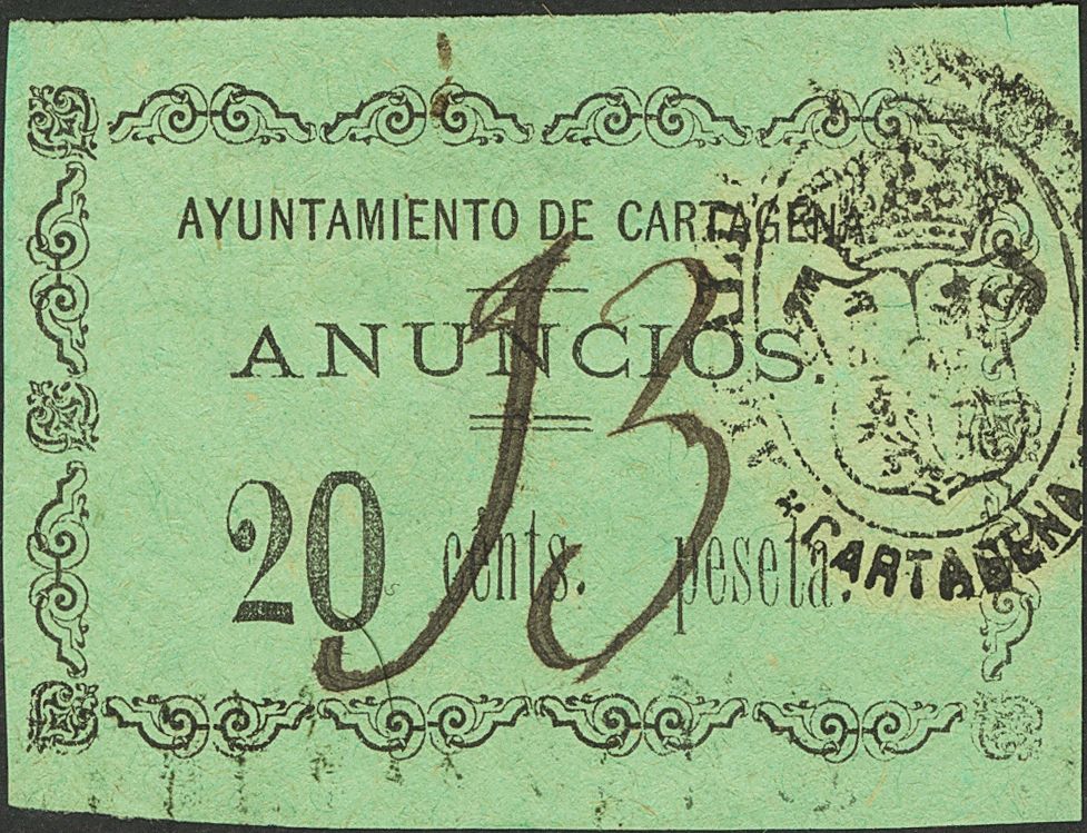 En los de 1877 de ANUNCIOS, lo único que he encontrado es este de 20cts con cifras diferentes a las mostradas por LPerez: