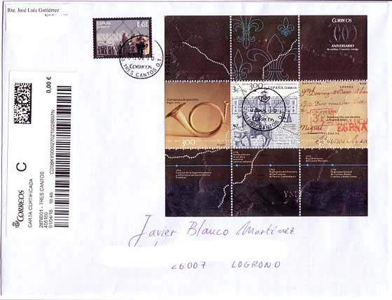 Como dice Luis, es bonito procurar que el matasello sea conmemorativo, o primer día, o uno especial de oficina, y no echarlo al buzón, para evitar los CTA de turno. Cuando pasan los años y miras el álbum con todo lo recibido te das cuenta de que tienes unas joyas que te llenan de gozo. O al menos así me ha ocurrido a mi. EN algunos hilos del Agora y de Afinet he puesto ejemplos de imágenes de mi colección en este sentido. Si eres miembro de Afinet y entras en el foro, creo que aún estarán puestas las colecciones Virtuales del año 2014: la mía era "CARTAS CERTIFICADAS Y URGENTES EN LA HISTORIA POSTAL DE ESPAÑA EN EL SIGLO XXI". Todas o casi todas esas cartas eran de las recibidas de los compañeros del CCO 1+2.
