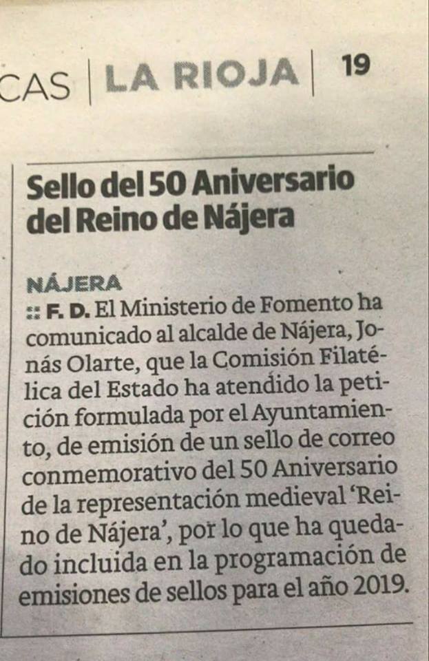En La Rioja para el 2019, sello 50 Aniversario de la representación medieval del Reino de Nájera