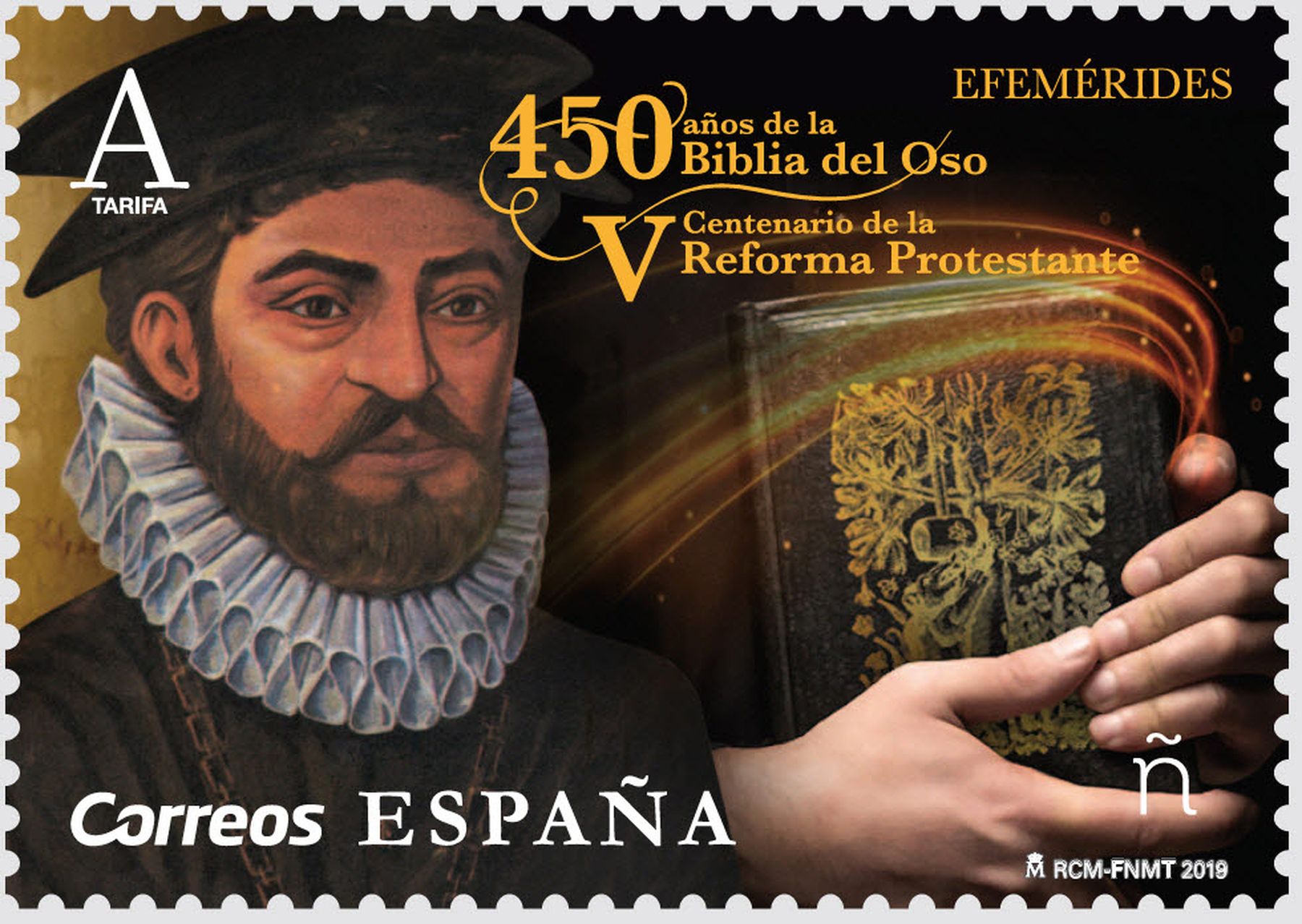 Correos comienza la serie Efemérides este 2019 con un sello dedicado a los 450 Años de la Biblia del Oso y el V centenario de la Reforma Protestante, la cual no puede ser concebida sin la Biblia.