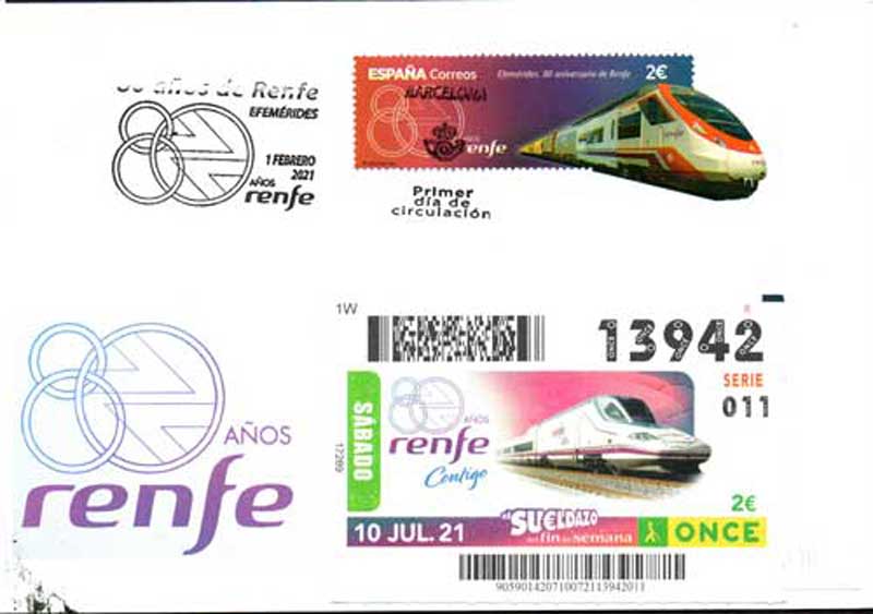Donde junto, cupón de la ONCE, sello y Matasellos todo con un mismo tema