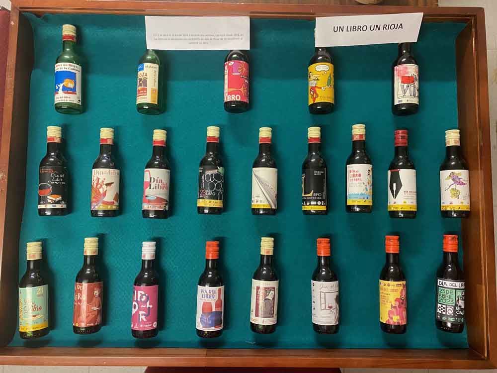 colección de botellines un libro un Rioja. En el día del libro 23 de abril por la compra de un libro, te regalan un botellín de vino Rioja, en Logroño, desde 1998.