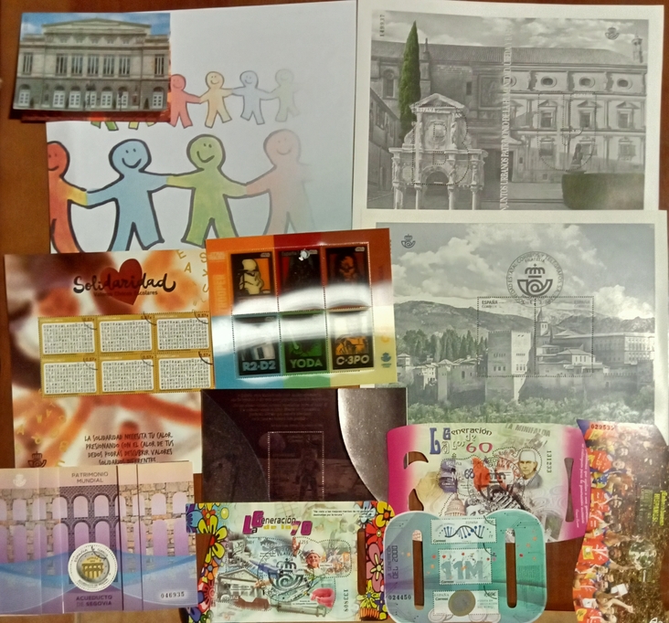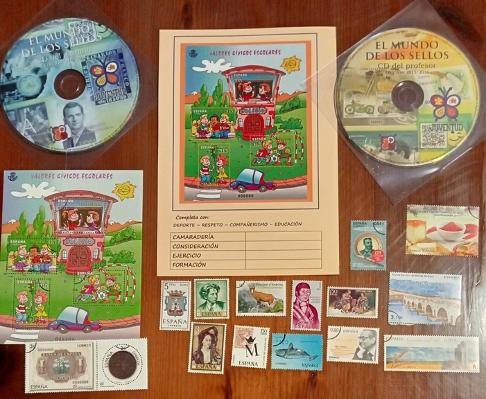 RIFA DE SUPER LOTE DE SELLOS PRE-OBLITERADOS VALORADOS EN +DE 330€ E INFORMACION DE FILATELIA JUVENIL