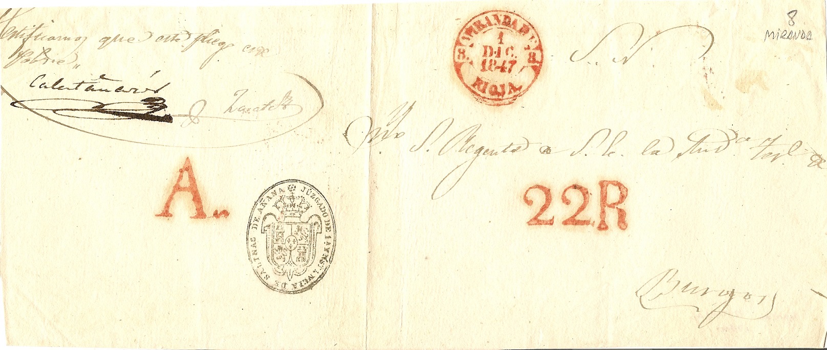 Una carta de La Puebla (de Arganzón) a Vergara de 5 de febrero de 1.814 que también amplia el uso de la marca, si bien esto sirve para confirmar lo ya indicado.