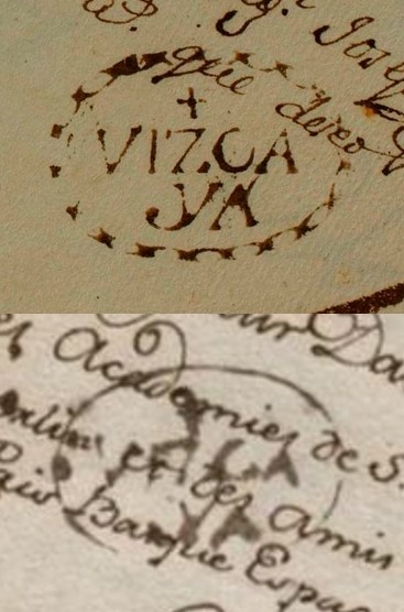 En Badator tenemos una carta de 1771 y aquí tenemos una carta de Vergara a Paris fechada el 18 de enero de 1772, lo que amplía el uso en dos años y prácticamente cierra hueco con el siguiente cuño.