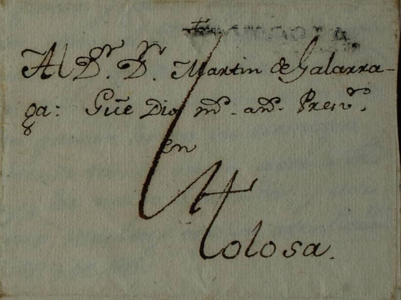 Tenemos dos cartas que no podemos fechar. La primer es una envuelta que se encuentra en un archivo de cartas fechadas en Vitoria entre 1.748 y 1.750.