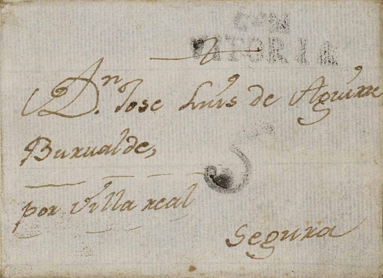 La segunda es también una envuelta sin fecha que está en un archivo con cartas de varios orígenes de entre 1.748 a 1.769, donde las que más se repiten son de Vitoria de 1.750.