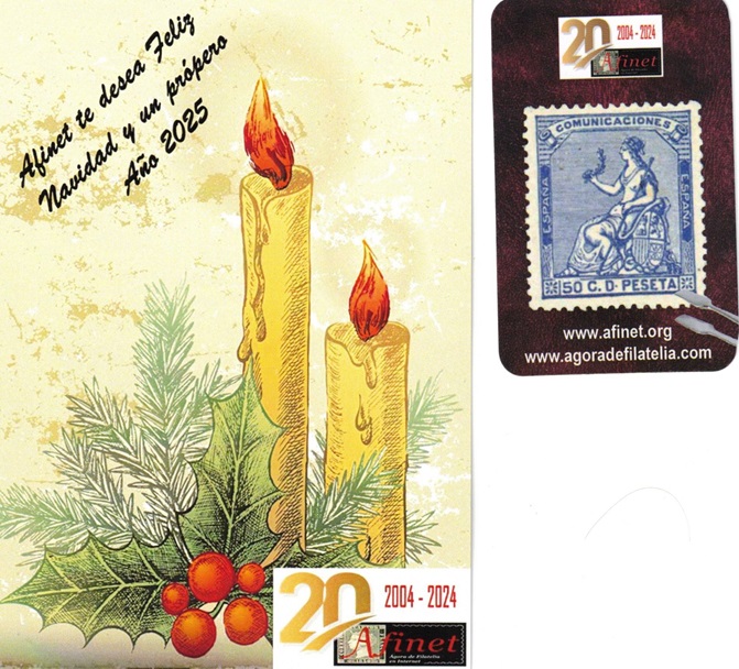 Recibida hoy la bonita postal de felicitación de Navidad de AFINET junto con los calendarios de bolsillo de este próximo año 2025.