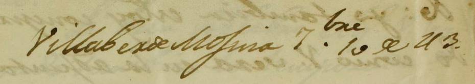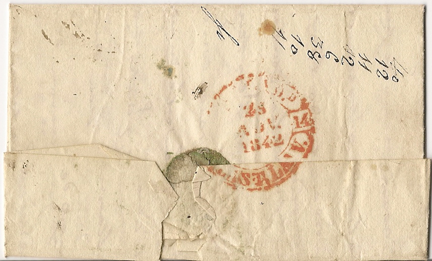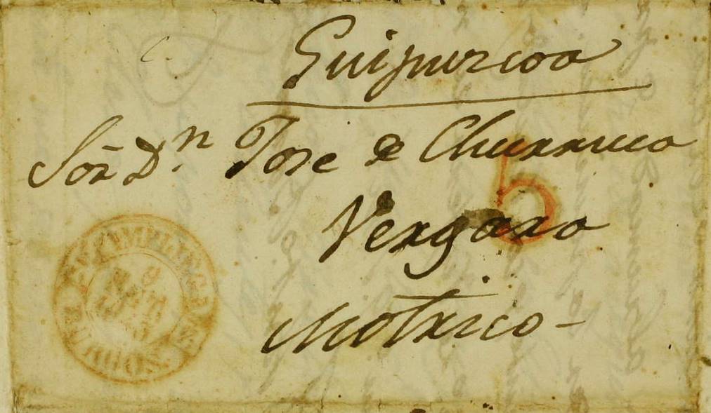 Tenemos la siguiente carta fechada en Villaverde Mogina el 10 de septiembre de 1843, aunque el fechador parece del día 9, que adelanta el uso de la marca en rojo en tres años.
