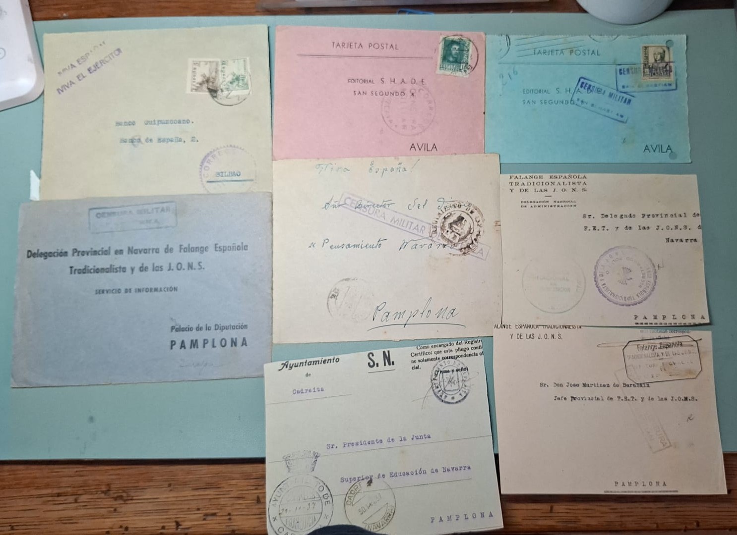 Re: LOTE 306 . 22:20h. Conjunto de 11 cartas, frontales y tarjetas con censuras y marcas postales vasco navarras